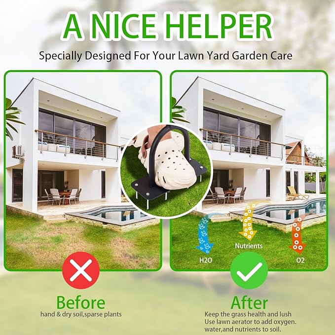 - A Solution for Compact Lawn Soil -- Manual lawn plug aerators help to loosen soil and reduce soil compaction. It can permit nutrients, oxygen and water to penetrate into plant roots effectively and help plants grow better.