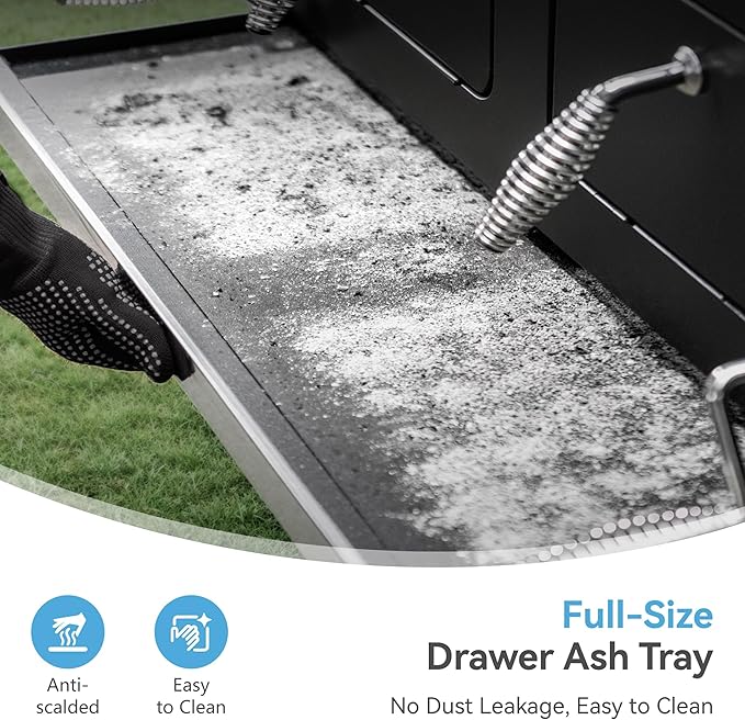 - HASSLE-FREE CLEANING: Full-size bottom ash tray makes cleanup a cinch and easy to access with pull-out stainless steel edge
