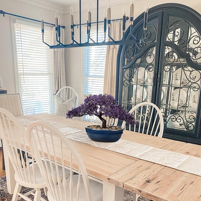 Artificial Bonsai Tree Juniper Faux Plants Indoor Fake Plants Decor with Blue Ceramic Pots for Home Table Office Desk Bathroom Shelf Bedroom Living Room Farmhouse Decorations