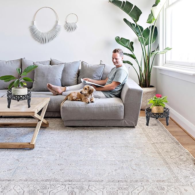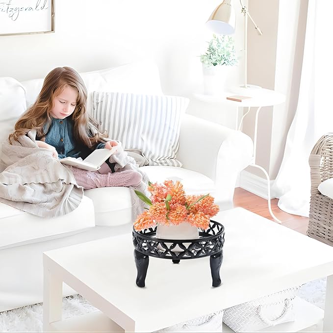 - Multi-Purpose: Black stand.Plate Diameter: 25 CM / 9.8". Product Dimension: L:25 CM / 9.8"*H:15 CM /6"* W:25 CM / 9.8". Flower stands for indoor plants suitable for most potted plants.Outdoor plant stands for patio, balcony, courtyard, kitchen living room, apartment corner, company.Used to place pots for plants, vases, beverage dispenser, trash cans, pet snacks, kitchen utensils, beverages, picnics