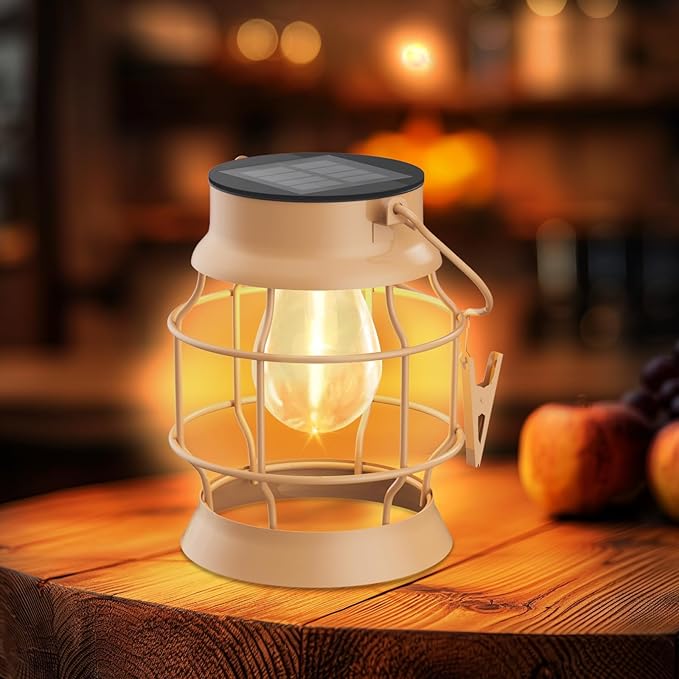 - Vintage Metal Solar Lights : Traditional metal vintage solar lights outdoor waterproof lights exude timeless elegance and charm, distilling the essence of classic design with a hint of vintage allure. Our outdoor hanging solar light is complemented by champagne-colored openwork iron rim strips that give off an alluring glow. Perfect for decorating your garden or patio, it exudes a delightful vintage vibe.