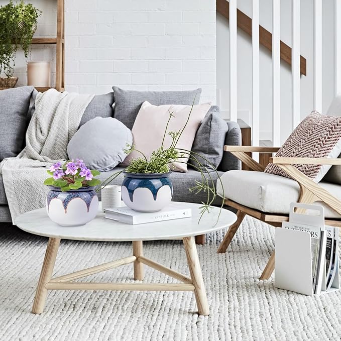 - Elevate Your Indoor Oasis: Our African violet pot seamlessly blends functionality with aesthetics, making it the perfect match for a wide array of indoor plants such as Herbs, Aloe Vera, Baby's Tears, Pothos, Fittonia, Cacti, and Succulents. It's the ultimate addition to embellish your living room, kitchen, office, or any indoor space with a touch of greenery.