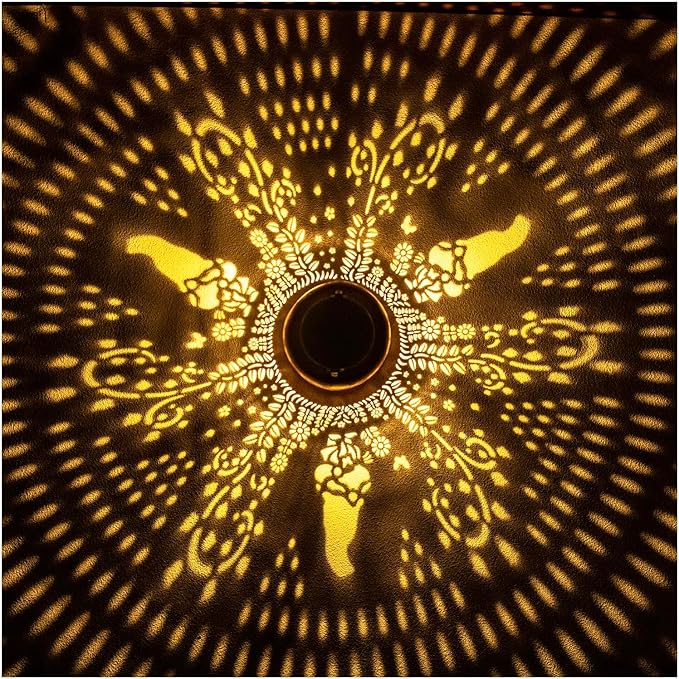 - 【Beautiful Garden Decoration】- Gnomes Outdoor Solar Lanterns can project unique and beautiful light patterns in dimly lit environments, creating a gorgeous and warm atmosphere, adding life and fun to your garden and attracting your family or friends. The very unique hollow design and antique bronze color give it an elegant and artistic look, perfect for decorating backyards, gardens, corners, outside, pathway, tabletop, courtyards, sidewalks and many other scenes.