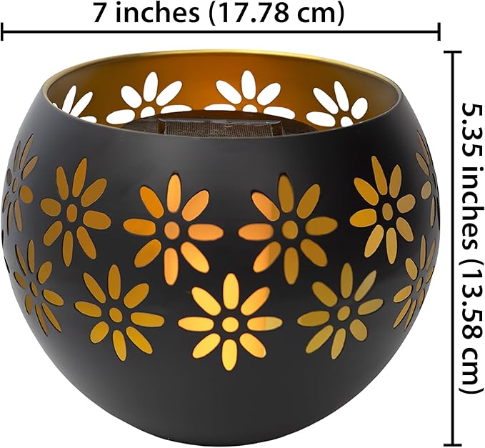 - 5.4” Metal Decorative Bowl - The Solar Fire Bowl features a stylish metal design, adding a touch of sophistication to your outdoor garden decor while serving as a functional solar table lamp, lantern and garden decor.