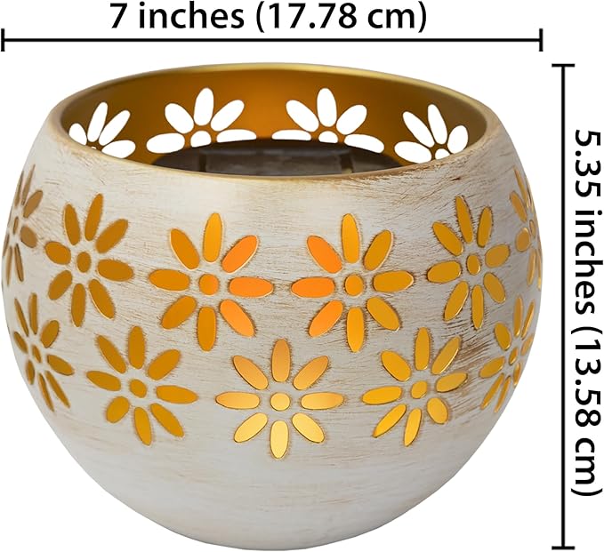 - 5.4” Metal Decorative Bowl - The Solar Fire Bowl features a stylish metal design, adding a touch of sophistication to your outdoor garden decor while serving as a functional solar table lamp, lantern and garden decor.