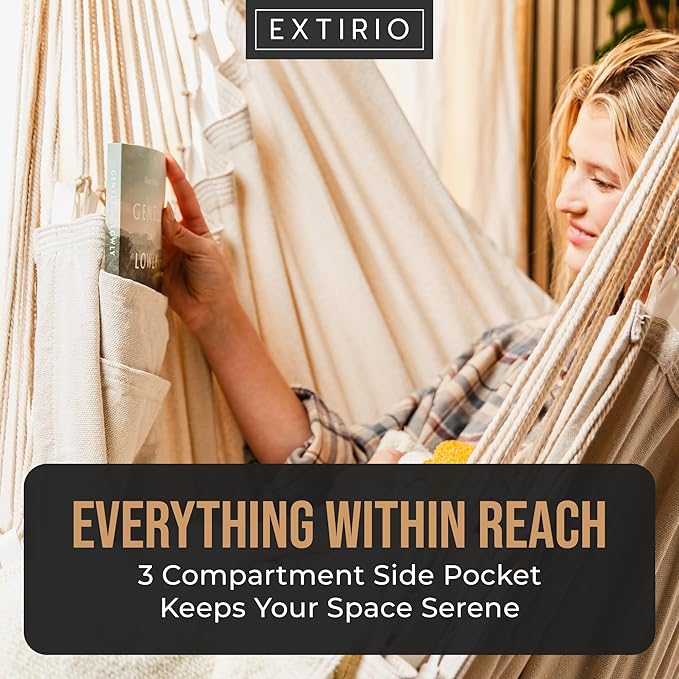- ๐๐ฉ๐๐๐ข๐จ๐ฎ๐ฌ, ๐ ๐ฎ๐ฅ๐ฅ-๐๐จ๐๐ฒ ๐๐จ๐ฆ๐๐จ๐ซ๐ญ โ Unwind fully in our hammock chair with footrest, made for deep relaxation and full-body support. With a built-in foot rest and breathable cotton blend, itโs the perfect hanging chair for bedroom, patio, or porchโand the ideal indoor swing for adults seeking a cozy reading nook or napping spot.