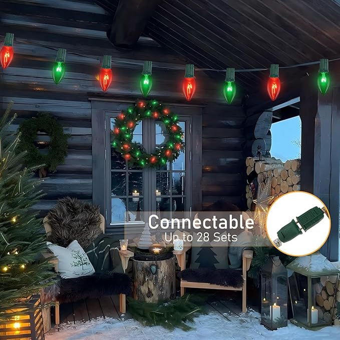 - Versatile Outdoor Christmas Lights: Transform your indoor and outdoor spaces with C9 clear red and green Christmas lights. Ideal for your tree, patio, balcony, or garden, these lights add a warm, inviting glow to any setting, making your holiday celebrations unforgettable.