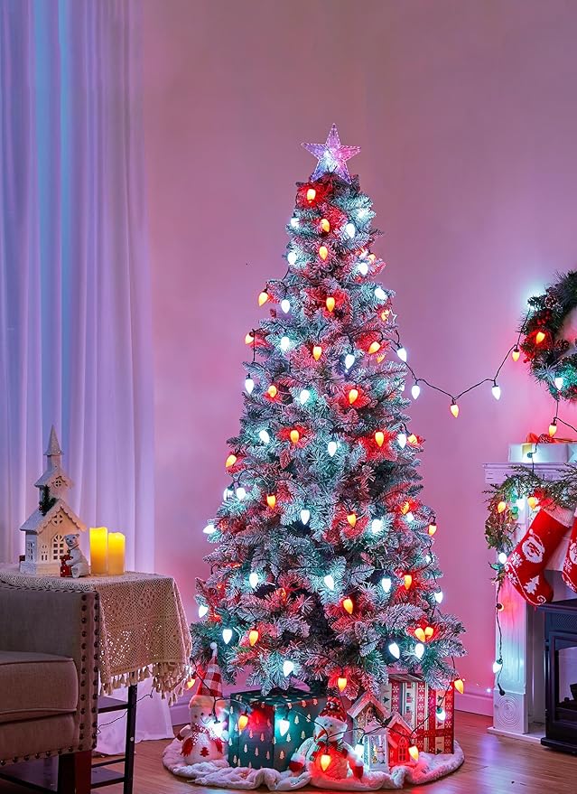 - 【 Connectable Up to 33 Sets 】- You can connect up to 33 sets of these C9 LED Christmas string lights end to end, providing convenience for decorating large areas or substantial outdoor objects such as rooflines or oversized trees