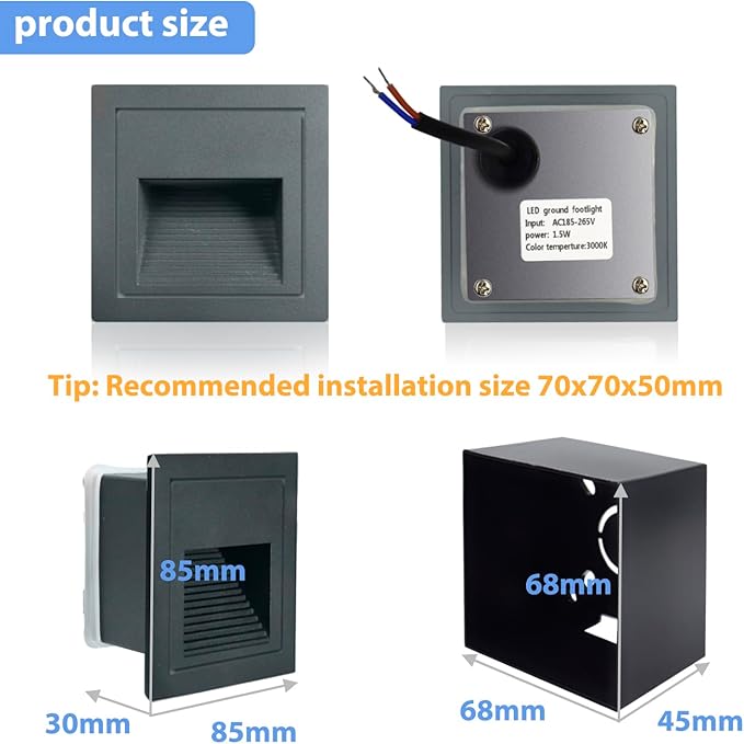 - Application: Sleek, modern design,suitable for indoor use such as terrace, stairs and steps. Good choice as a recessed floor light, orientation light and decorative light