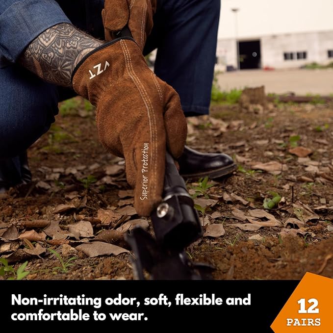 - 【12-Pair Pack Perfect Gift】Traditional brown color for a simple, classic look with no irritating odor. These safety work gloves are suitable for construction workers, gardeners, forestry workers, carpenters, truck drivers, manual laborers, blacksmiths, ironworkers, and blue-collar professionals. A perfect choice for both men and women whether for yourself, family or friends. Available in 4 sizes: M, L, XL, and XXL.