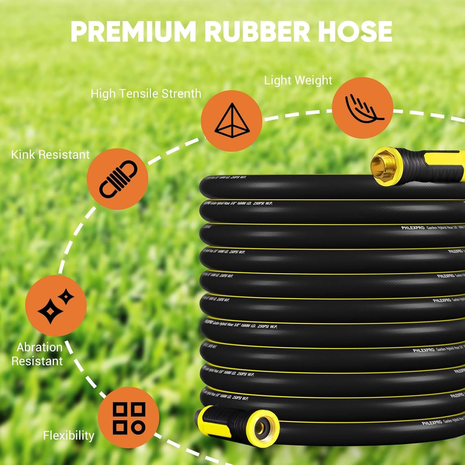 - ๐กใ๐๐ข๐ ๐ก๐ญ ๐๐๐ข๐ ๐ก๐ญ ๐๐ง๐จ๐ฎ๐ ๐กใ: PHLEX PRO garden hose is reliable heavy-duty, but it is not heavy in weight, upgraded hybrid material from rubber and polymer. This hose is lighter than traditional rubber hose while being abrasion-resistant and durable.
