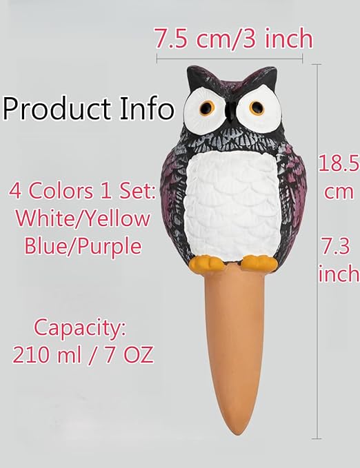 - 🦉Easy to Use: Simply soak the terracotta in water, insert self-watering spikes into the soil, and fill it up. The wide opening makes refilling easy, and the automatic plant waterer gradually releases water into the soil, keeping your plants perfectly moist without overwatering.
