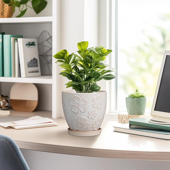 - Stylish Appearance: Our 6 inch plant pot has a white main colour and a beautiful embossed petal pattern on the surface, elegant appearance making it ideal for home decor, garden decor and office decor
