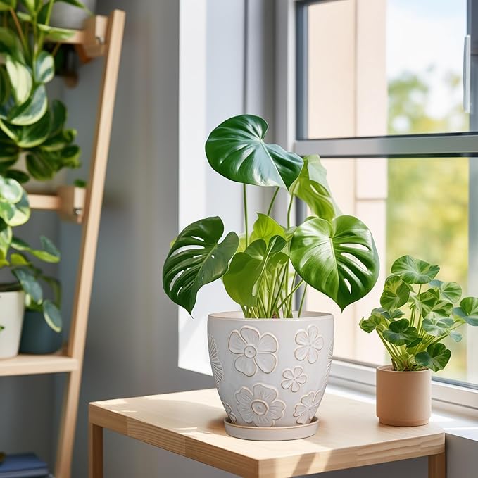 - Stylish Appearance: Our 6 inch plant pot has a white main colour and a beautiful embossed petal pattern on the surface, elegant appearance making it ideal for home decor, garden decor and office decor