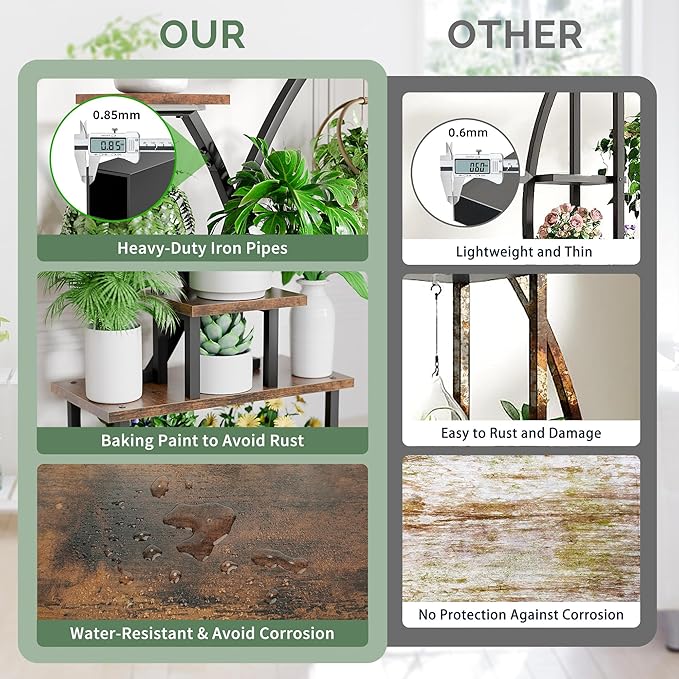- 【Easy To Assemble】We provide detailed instructions and the necessary tools for installation to ensure an easy and straightforward process. In just 30 minutes of hands-on installation, you'll have a spacious plant stand. Keeping the safety of children and pets in mind, we also offer wall mounting straps to minimize the risk of the plant stand tipping over.