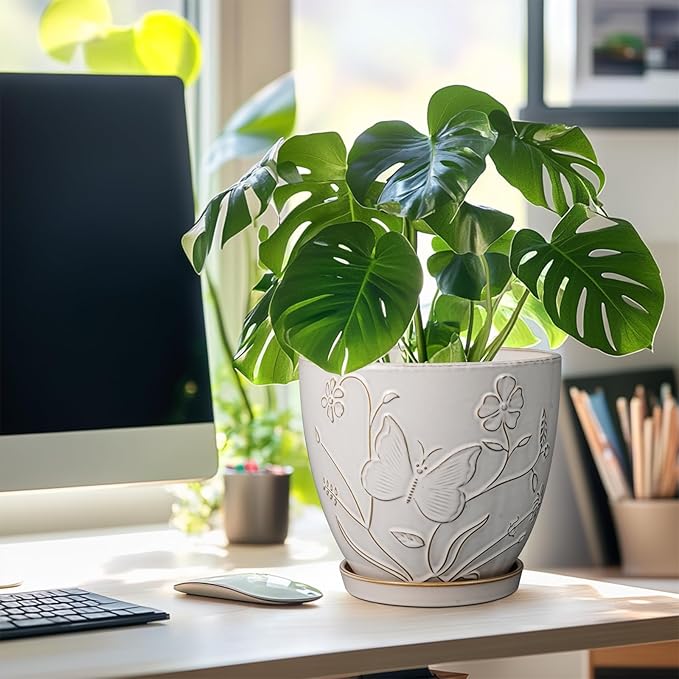 • Materials: This 8 inch plant pot is made of high-temperature ceramic material, durble and solid. This ceramic planter pot can be used indoors and outdoors for a long time, without worrying about fading, warping or rusting