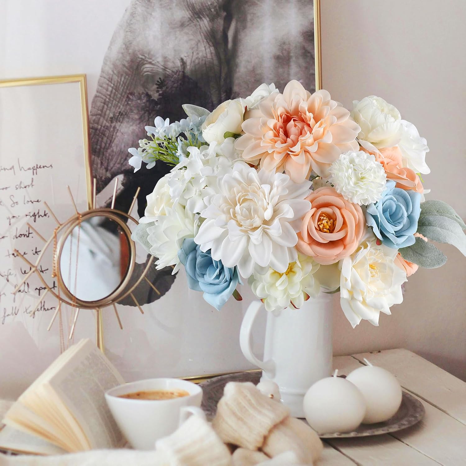 - 【Artificial Flowers Set】This fake flower set box consists of different types and colors of fake flowers. Handmade artificial flowers come with flower stems. These artificial flowers for decoration can be used as wedding bouquets, bridal shower decorations, wedding centerpieces for tables, baby shower home decorations.