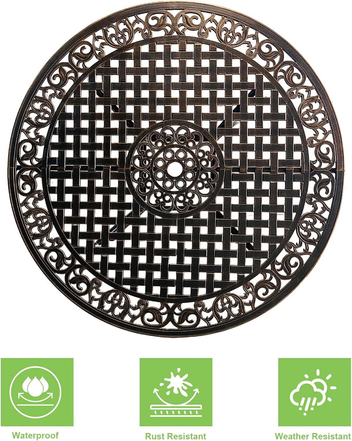 - Durable Cast Aluminum: The frame made of high-quality aluminum with powder coating protects the outdoor patio bistro sets from getting rust all weather and ensures the round dining table set durability for years to come.