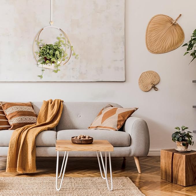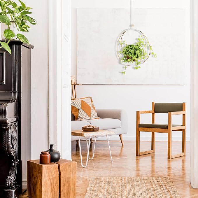 - 【Superior Metal & Wood Materials Hanging Planter】The planter hanger ring frame is crafted from high-quality iron and has a sturdy wooden base, guaranteeing stability and durability for hanging plants. Thanks to the wooden base, you can also hang scented candles and small decorations to decorate your home and office.