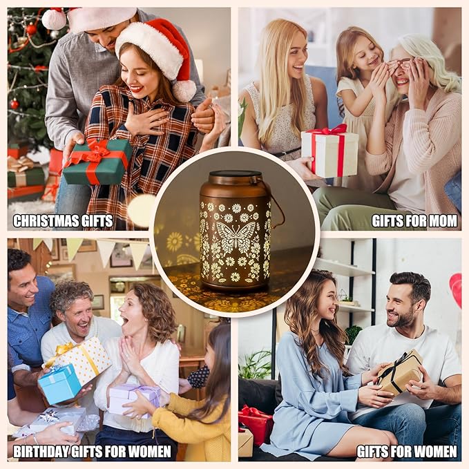 - Outdoor Decor, Garden Decor, Patio Decor, Balcony Decor, Yard Decor, Butterfly Outdoor Solar Lanterns are crafted from upgraded durable metal, The retro appearance, with gold copper color and hollow out metal veneer, gorgeous color, casts bright and warm light in darkness, accompanied by gorgeous and graceful patterns, adding a beautiful atmosphere to the surrounding environment. Add illuminated charm to a garden, patio, porch and outdoor tabletop