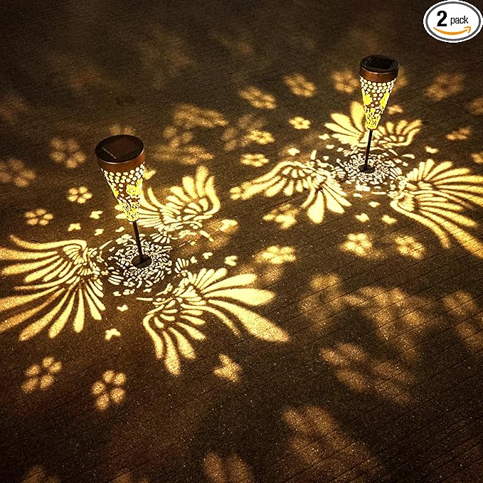 - 【Hummingbird Decor】Profinella's metal pathway lights feature intricate cut-out patterns that project lifelike images of three hummingbirds, transforming your garden, lawn, and outdoor spaces into enchanting nighttime scenes.