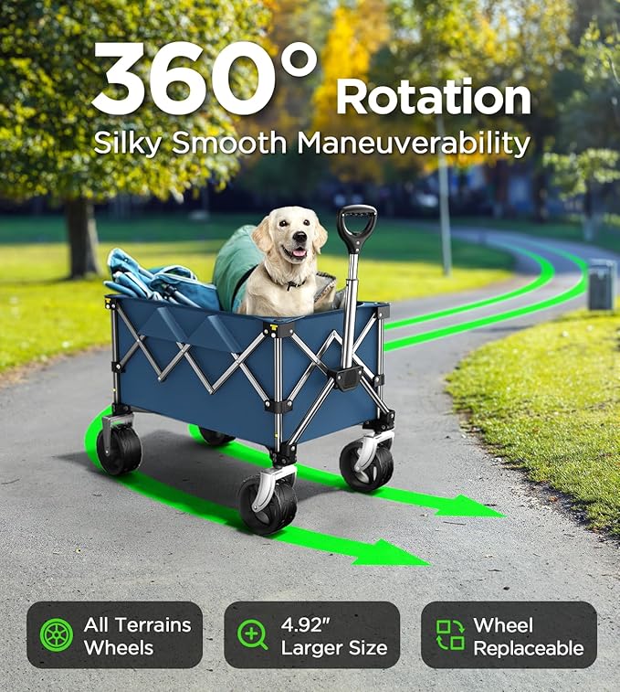 - Versatile Beach Companion: Perfect for hauling all your beach essentials with ease; this collapsible wagon features large wheels and dual bearings, ensuring a smooth ride on any terrain, whether sand, gravel, or grass