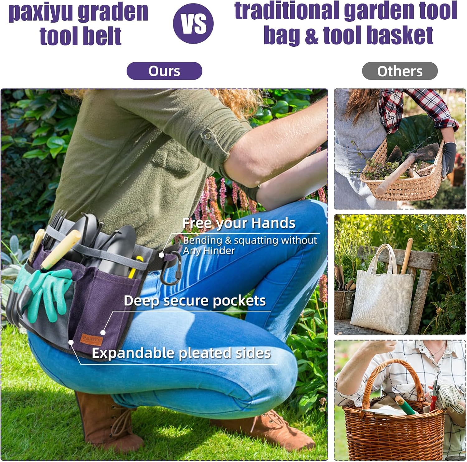 - 【Lightweight Yet Sturdy for Long Work Hours】: Designed for comfort, the cushioned waistband evenly distributes weight across the hips, reducing strain during extended use. The sturdy construction supports heavier tools while remaining lightweight for easy movement in gardening or woodworking