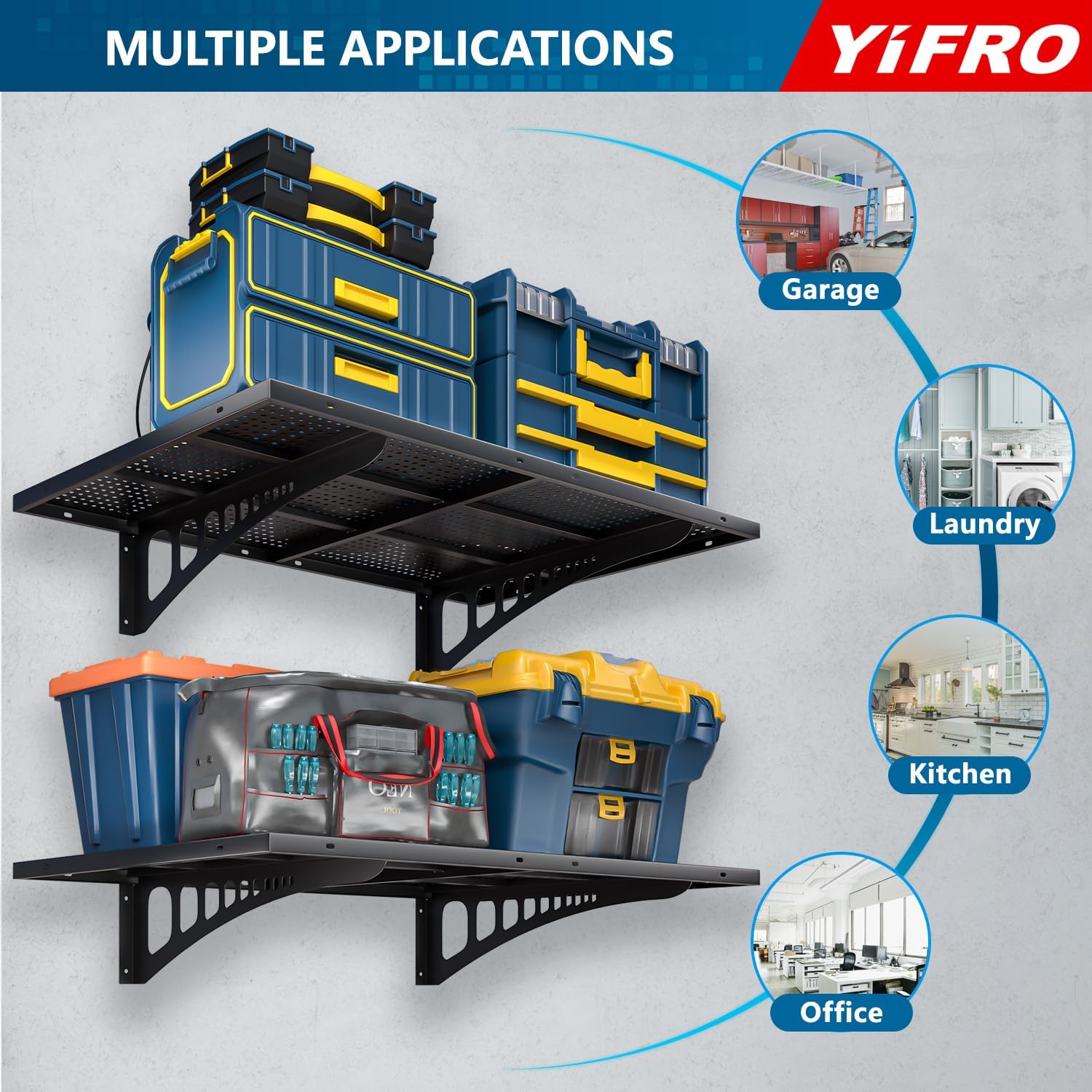 - HEAVY DUTY CONSTRUCTION: YIFRO garage wall shelving takes its cues from architectural frame construction, with a 2x3 ft individual bracket load capacity of 250 lbs. and a total of 1000 lbs. for 4 shelves, which makes it easy to store most of the items in your garage.