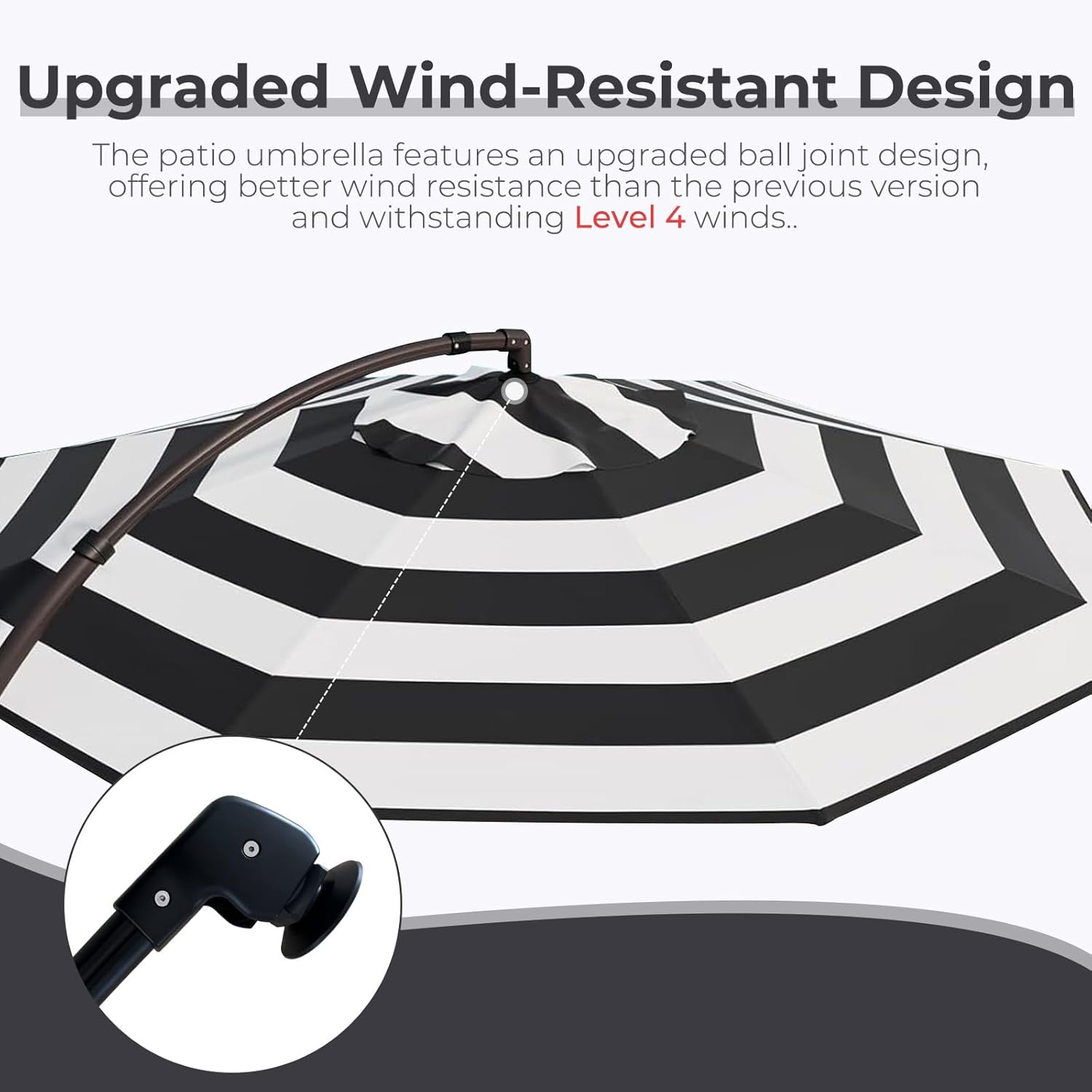 Grand patio 12FT Outdoor Round Offset Umbrella Large Patio Aluminum Cantilever Umbrella with Base for Garden Deck Poolside (Black & White, 12 FT)