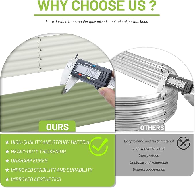 - HIGH-QUALITY MATERIALS: The product uses color-coated metals, which have better surface gloss than other painted metal plates and they are less likely to lose paint and color. We also use thicker metal plates which will better protect the soil and vegetables and will not easily cause product deformation and damage.