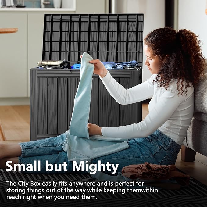 - ADAPTABLE TO VARIOUS SCENES: Whether used as an indoor laundry storage chest or an outdoor deck box container for items like outdoor cushions, garden tools and pool accessories, this patio storage box provides abundant space. It's also versatile as a side table, yard seat, storage bench, or footrest
