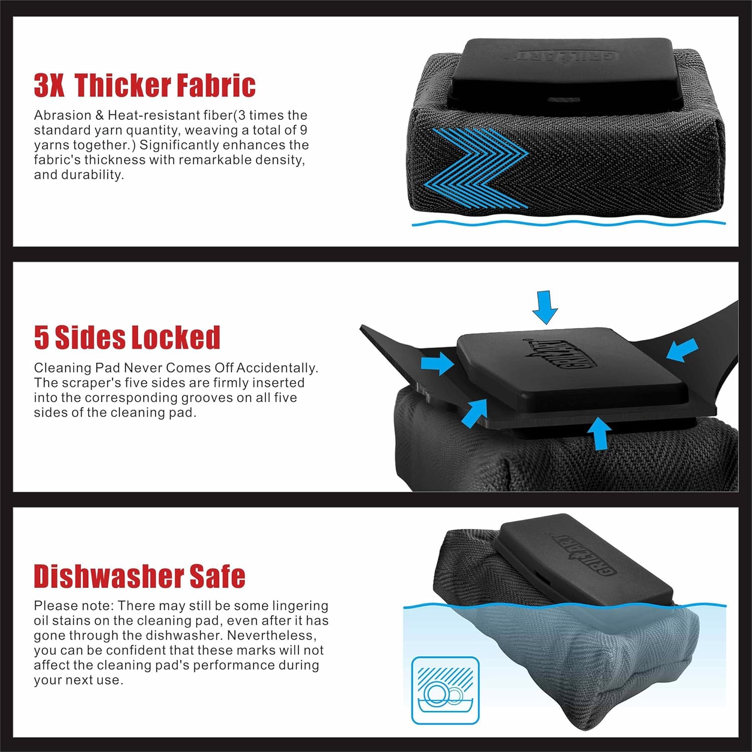 GRILLART Grill Brush Bristle Free, Replaceable BBQ Cleaning Pad (No Handle), Safe Replacement Cleaning Pad/Head for Cast Iron/Stainless Steel Grates - Dark Black
