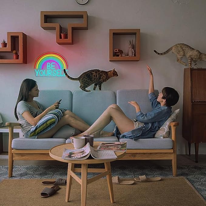 - High Quality Neon Sign: Be yourself neon light signs are made of silicone tube+led neon strips +acrylic back plate. Led neon signs is bright, noise free and energy-saving,5V low voltage, long life, no risk of too hot or glass damage.