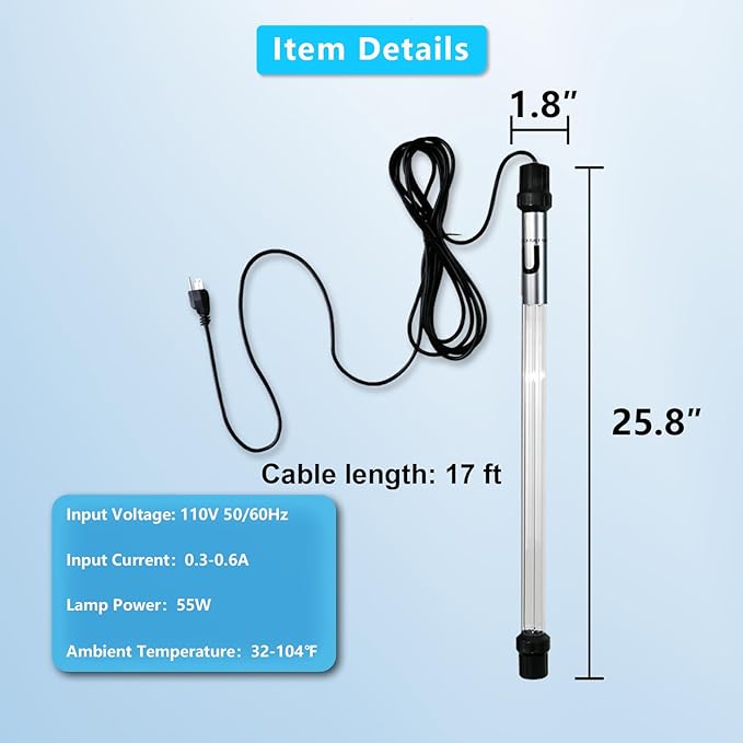 - 【365 Days Warranty】In order to help you master the installation and usage skills quickly, we have released a detailed installation video on the listing. The lifespan of the uv light is 8000 hours, we will provide a one-year warranty. If you have any questions, feel free to contact us at any time. EPA EST NO.: 96998-CHN-1