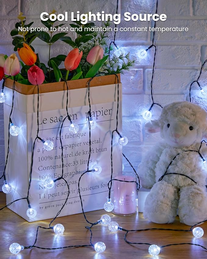 - 【Wide Application & Memory Function】The solar globe string lights with built-in memory chip save your last modes setting and no need to reset mode every day; Perfect decoration for terrace, pergola, bistro, backyard, deck, patio, garden, Christmas, holiday, wedding, party and other celebration occasions.