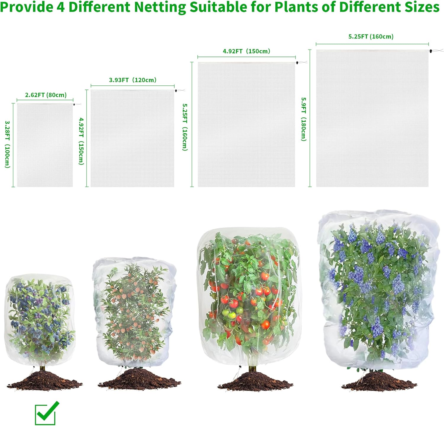 Garden Mesh Netting with Drawstring,Plants Cover Protection from Anti Birds,Bugs,Cicadas,and Insects-Pest Barrier Bag for Blueberry Bushes,Citrus,Tomatoes,Vegetables,Fruit Tree and Orange