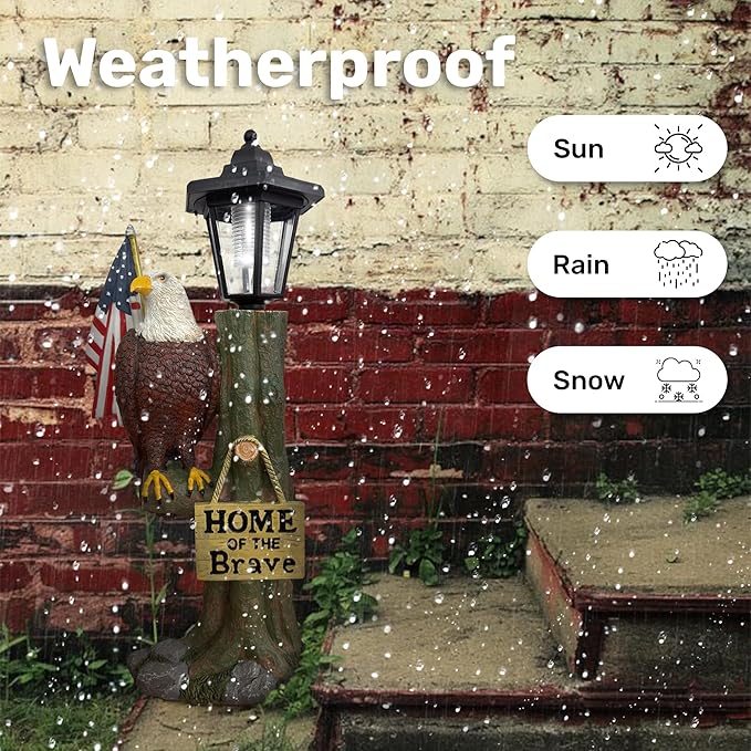 14x6 Inch Eagle Outdoor Solar Statue, Home of The Brave Outdoor Decorative Sculpture, Garden Decoration Outdoor Waterproof, Eagle Statue with American Flag for Patios, Yards, and Gardens