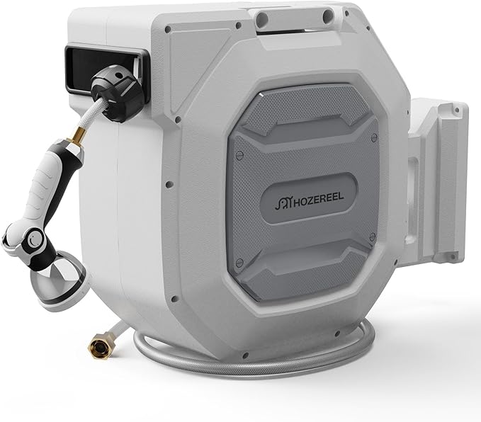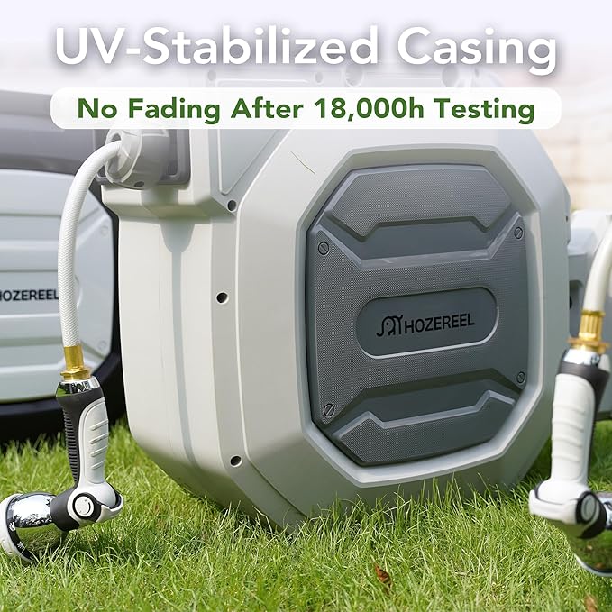 - 【Heavy Duty for Long Term Using】: The HOZEREEL hose reel is well built and no leaks in normal everyday use. The hybrid hose is strengthen construction and the connect fittings are made of brass.