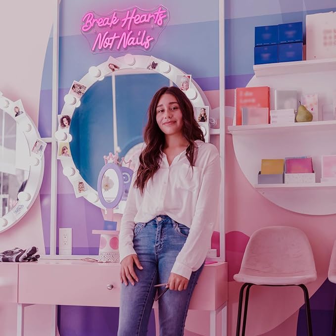 - Unique Design: This "Broken Heart Not Nails" neon sign features a vibrant pink color that is eye-catching and attention-grabbing. The pink neon light is perfect for wall decor in bedrooms, nail salons, and beauty clinics, and it also makes an ideal choice for commercial neon signage