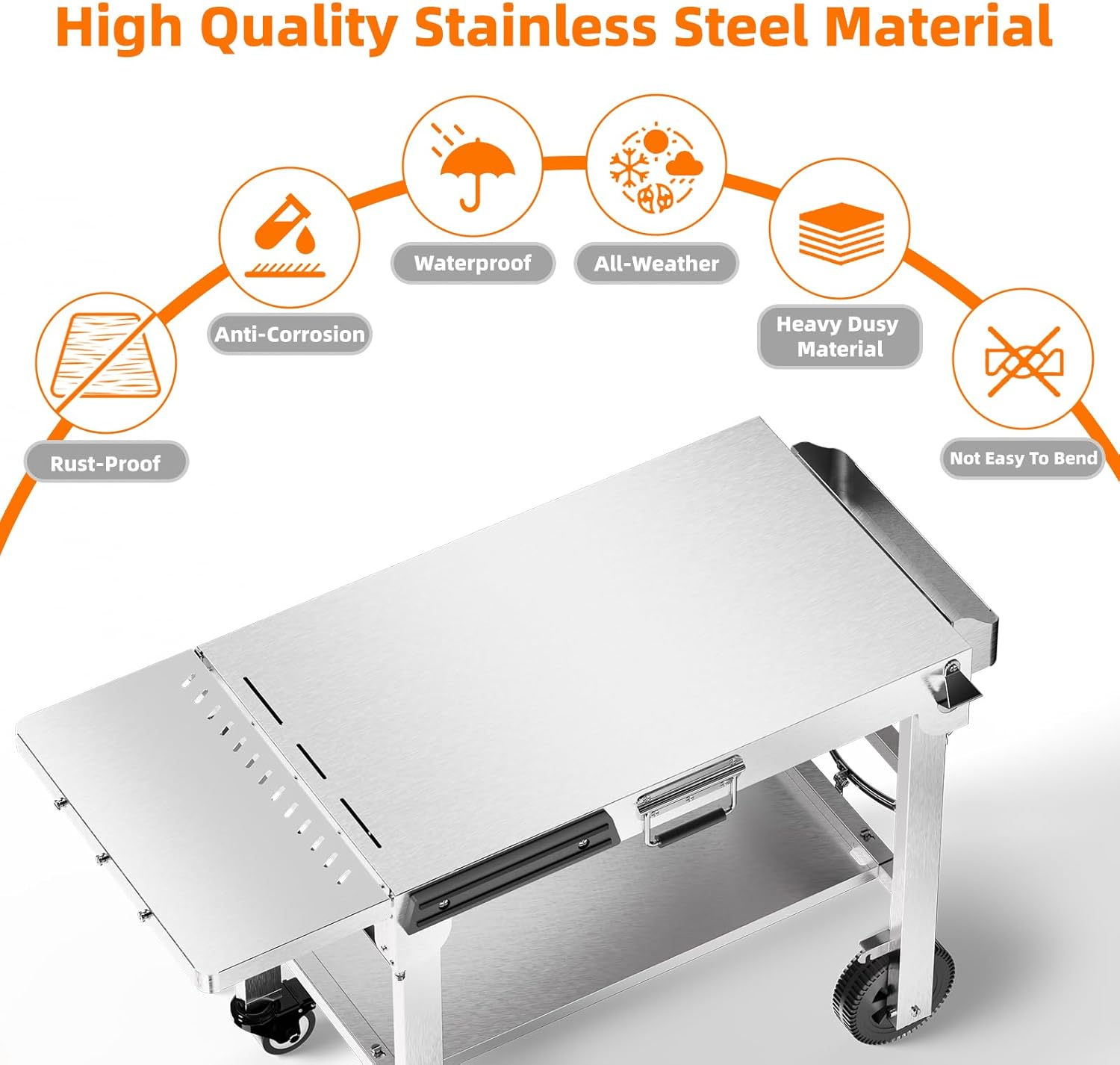 - 100% 304 STAINLESS STEEL MATERIAL: This outdoor grill table is made entirely of Food Grade 304 stainless steel material,which can support to 450 LBS, sturdy and durable, easy to clean, heat-resistant, Rust-proof and Water proof.Our grill table is the perfect partner for your Blackstone grills, barbecue grills, cookers, smokers and other portable outdoor cooking equipment
