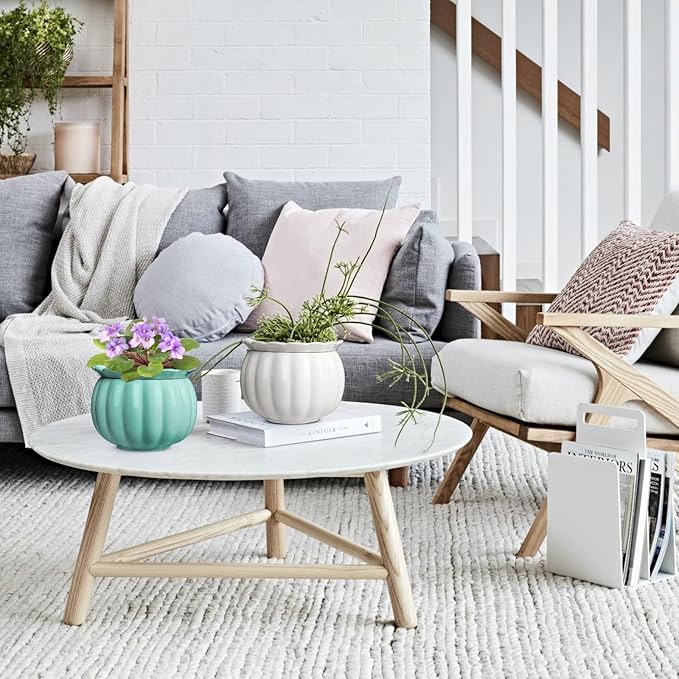 African Violet Pots, 6 inch Pumpkin-Style Ceramic Easy Self Watering Plant Pot for Busy Plant Lovers, Automatically Absorb Appropriate Amount of Water, Flower Pot Indoor-Plants Not Included