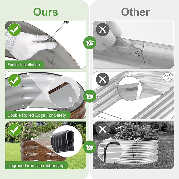 - 【Upgrade Quality & Structure 】The raised garden bed is made of thick galvanized metal with a surface spray coating, which is rust proof and anti-corrosion. Can be used for a long time. The Round design ensures uniform surface force and prevents deformation. More durable than other raised planter box, becoming a good helper for your garden