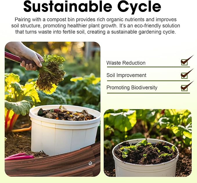 - 【Convenient & Organic】The height of the galvanized raised garden bed greatly reduces the burden of bending over to plant, making it easier for you to perform routine maintenance such as watering, fertilizing and weeding. In addition, our beds can be used with compost bins to effectively utilize kitchen waste and enjoy an organic lifestyle!