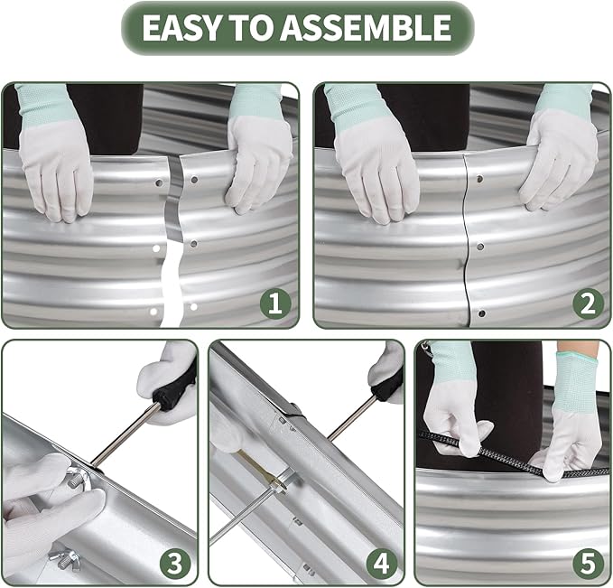 - 【High-Quality Materials & Durable】 Made from 0.5mm galvanized metal panels with double-layer anti-corrosion galvanization, this outdoor raised garden bed features a robust oval-shaped design for added strength and durability. Resistant to rust and corrosion, it provides a long-lasting gardening solution that can be reused for many years, ensuring a sustainable and reliable space for your plants to thrive.