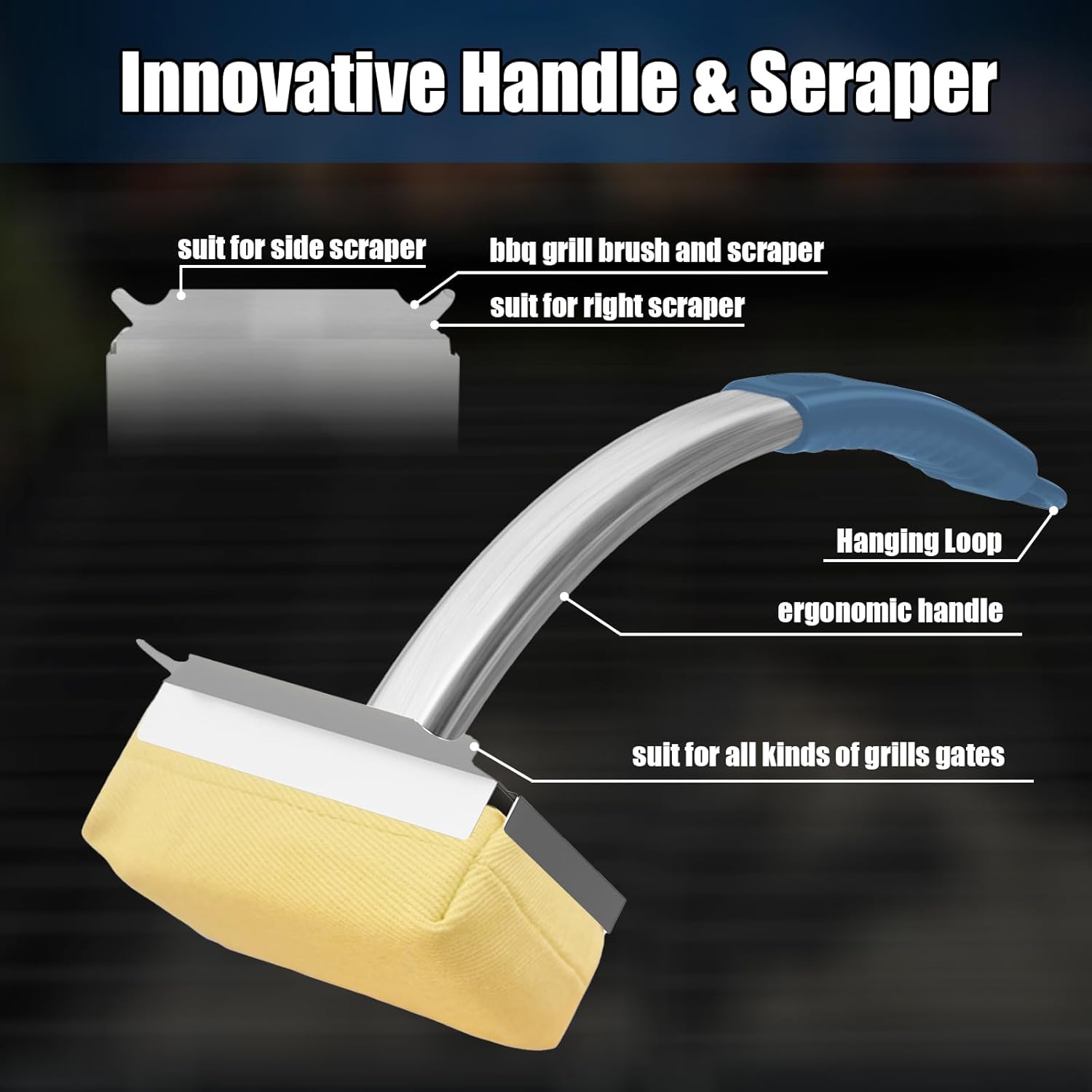 - Featuring an integrated hanging knot for convenient storage:this grill scraper stays easily within reach. It’s become an essential tool in my grilling setup.Designed for all of cooking grates,from cast iron to porcelain coated surfaces