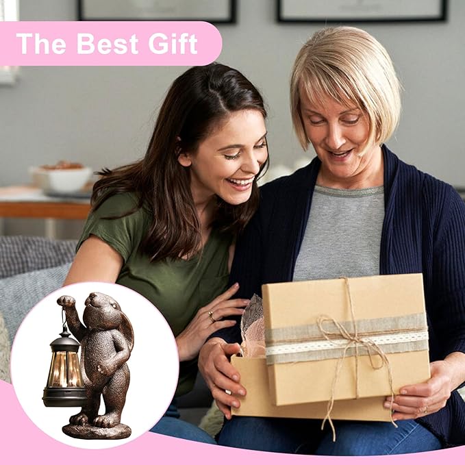 - 【Great for Various Scenarios】: Featuring a realistic rabbit design and a solar lantern, this statue seamlessly blends into any setting, whether placed in your garden, on a window sill, deck, patio, or corridor. Its compact size of 8.27 inches makes it perfect for adding a touch of elegance and charm to any room or outdoor space.