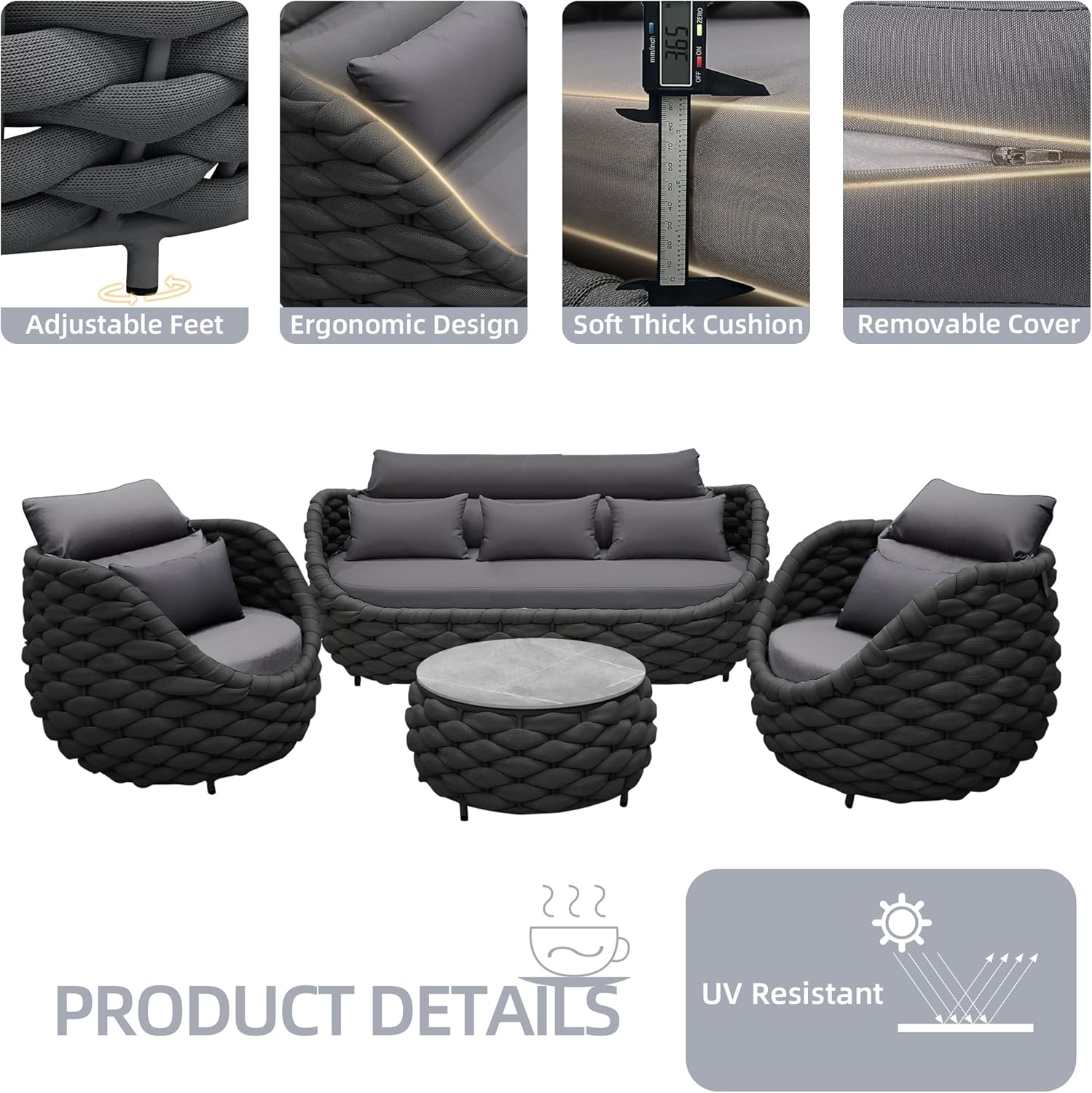 - Stylish & Multi-functional Design: Inspired by bird nests, our outdoor patio furniture set flaunts a modern yet warm look, fitting perfectly in any indoor or outdoor space. Hand-woven with Polyester rope, it exhibits an exquisite craftsmanship. Its versatility allows you to create a cozy corner in your patio, garden, or even living room effortlessly.
