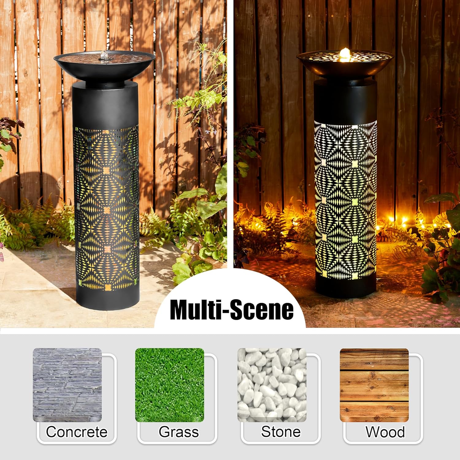 Glitzhome Modern Black Metal Cutout Water Fountain - 36'' Outdoor Bird Bath Fountain with LED Light & Pump - Freestanding Waterfalls Garden Fountains for Patio Backyard Porch Patio Decor
