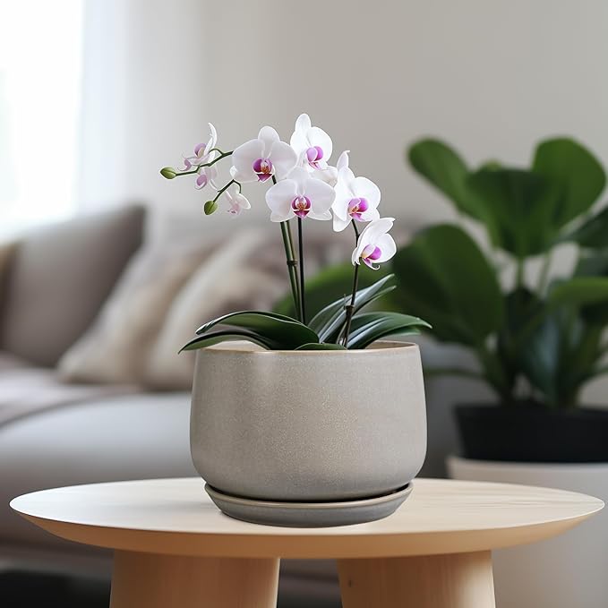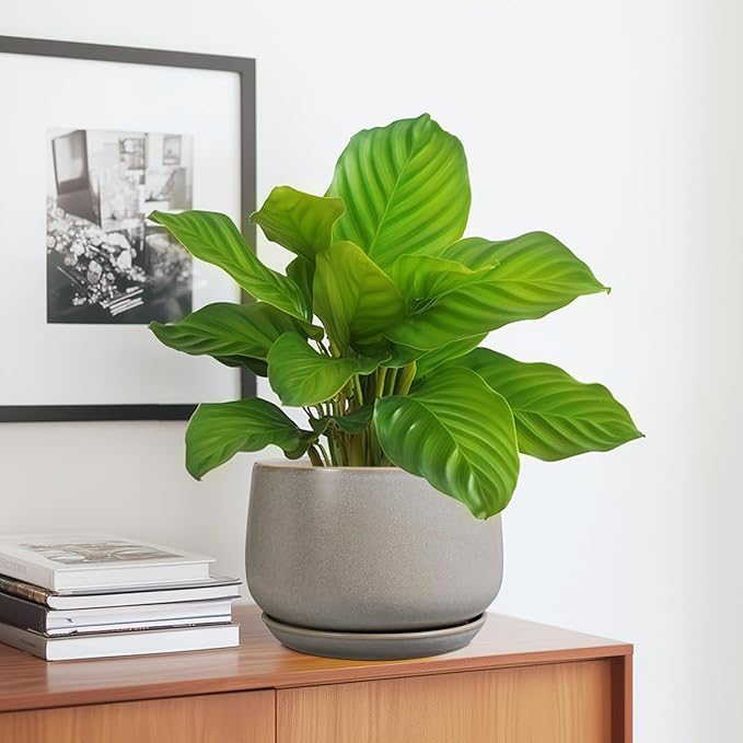 - Indoor Flower Pots with Drainage: This ceramic planter has a drainage hole at the bottom and a plant tray, which can collect excess water drainage and soil spillage, keep plant roots healthy. The planter includes a drainage mesh for better reduced soil loss