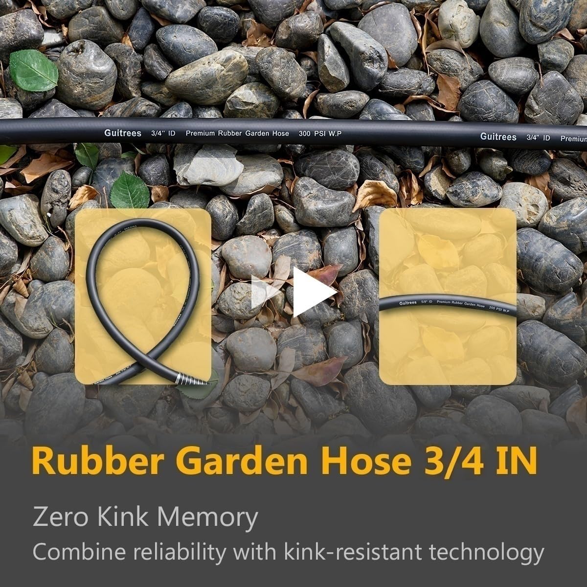 - Excellent Material: The heavy duty hose is equipped with a 3/4” solid brass GHT connector and a spring protection coil, which can maintain its shape even if the end of the rubber water hose is squeezed or stepped on. Whether it is heavy-duty tasks or daily use, it will be as durable as new.